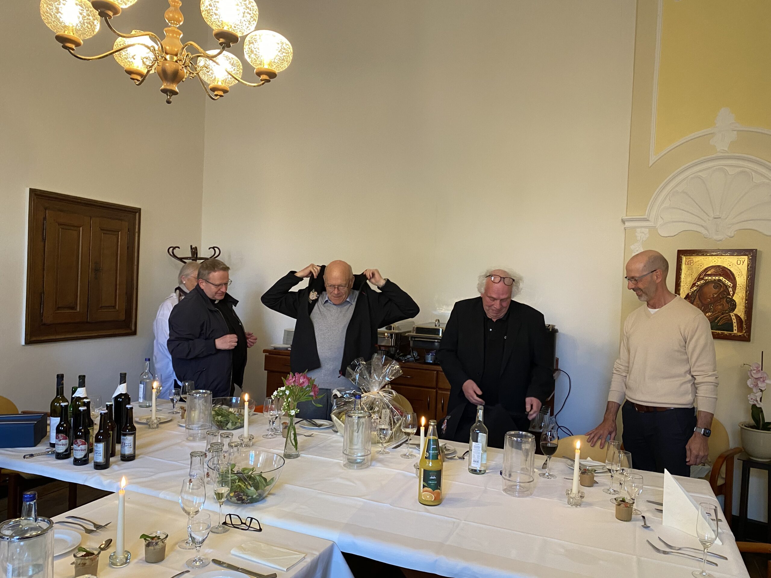 Im Rahmen eines gemütlichen Abendessens hat das Kuratorium seinen vorigen Vorstandsvorsitzenden Helmut Lanio und sein langjähriges Vorstandsmitglied Dr. Alfred Feuerborn verabschiedet. Beide haben sich aus privaten Gründen vor zwei Jahren von ihren Ämtern zurückgezogen. Bedingt durch die Corona-Pandemie konnte ihnen erst jetzt im Rahmen eines Abendessens würdig gedankt werden.
